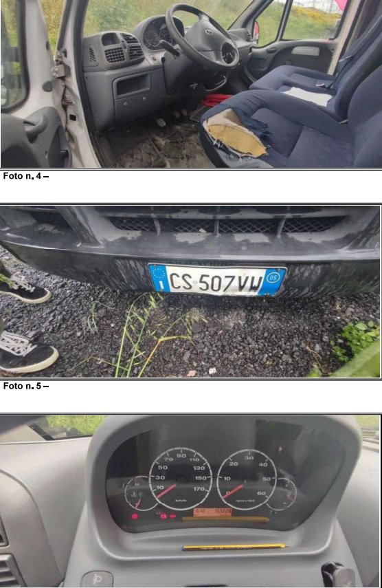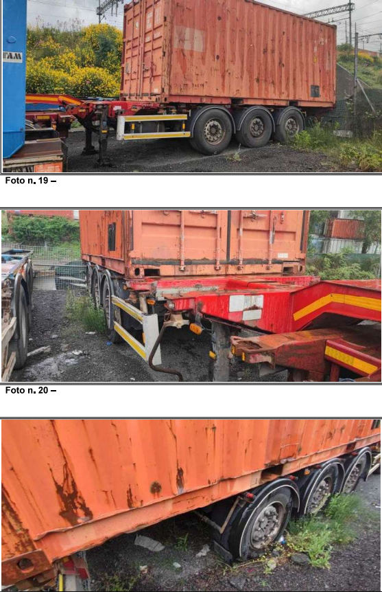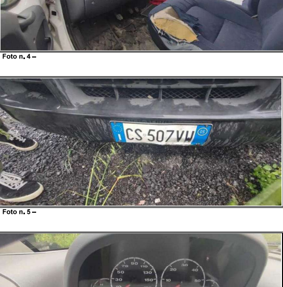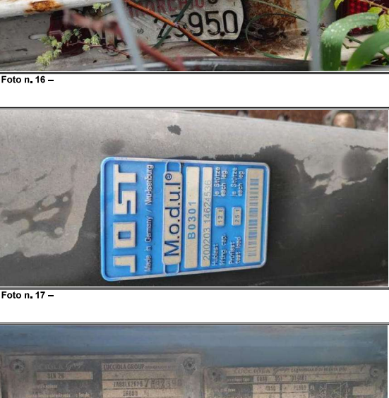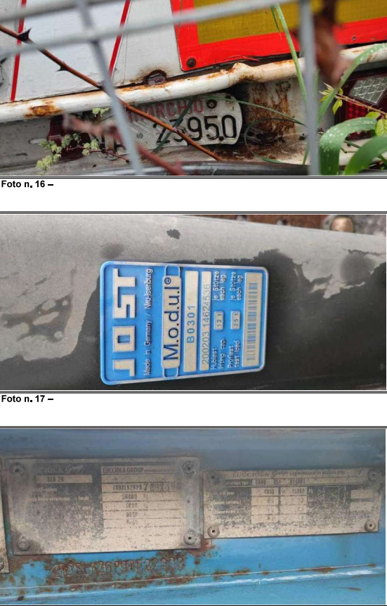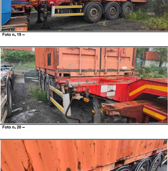 N. 1 motrice TG. GL923YA, IVECO STRALIS 460 , immat. 28.06.2016, KM 861.000, ultima revisione 24.10.2023 N. 1 furgone TG. CS507VW, FIAT DUCATO, immat. 16.09.2005, KM 153.000, ultima revisione gennaio 2023 N. 2 rimorchi TG. VA023950 (LUCCIOLA GROUP, immat. 2.01.1998, ultima revisione 24.06.2024) e AC87245 (MULITRAINER, immat. 19.11.2024, no libretto e CDP, diversi gravami e fermi amministrativi). Vendita competitiva telematica sul portale www.doauction.it – Gruppo Edicom