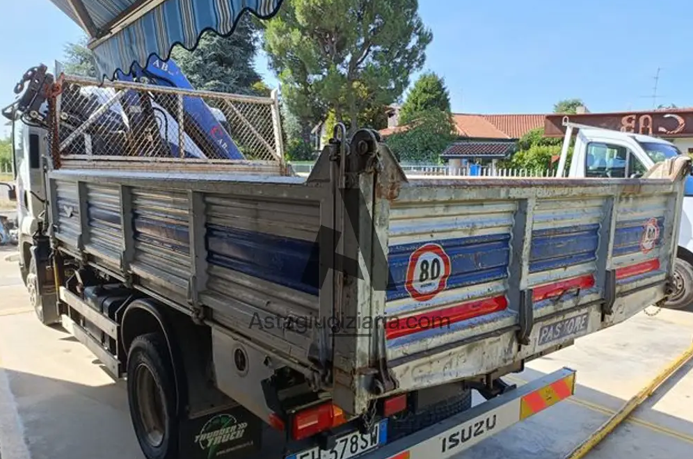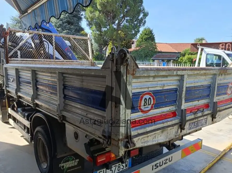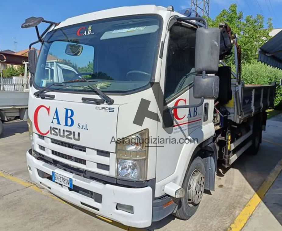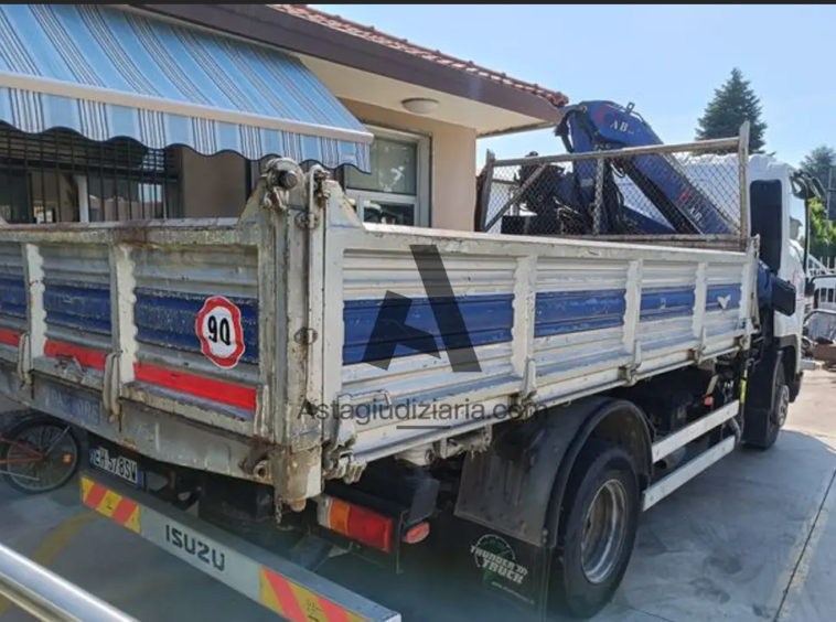 Autocarro Isuzu Euro5EEV targato EH378SW, immatricolato il 06/07/2011, cilindrata 5193 alimentato a gasolio, provvisto del libretto di circolazione, provvisto di chiave con gru dietro cabina PM n. G1100085, cassone ribaltabile trilaterale, cambio meccanico, km rilevati 48719Eventuali gravami iscritti sul mezzo verranno cancellati post vendita tramite specifica richiesta al Giudice o dufficio dallente che ha iscritto il gravame. Sono a carico dell’aggiudicatario le spese di istruttoria.
