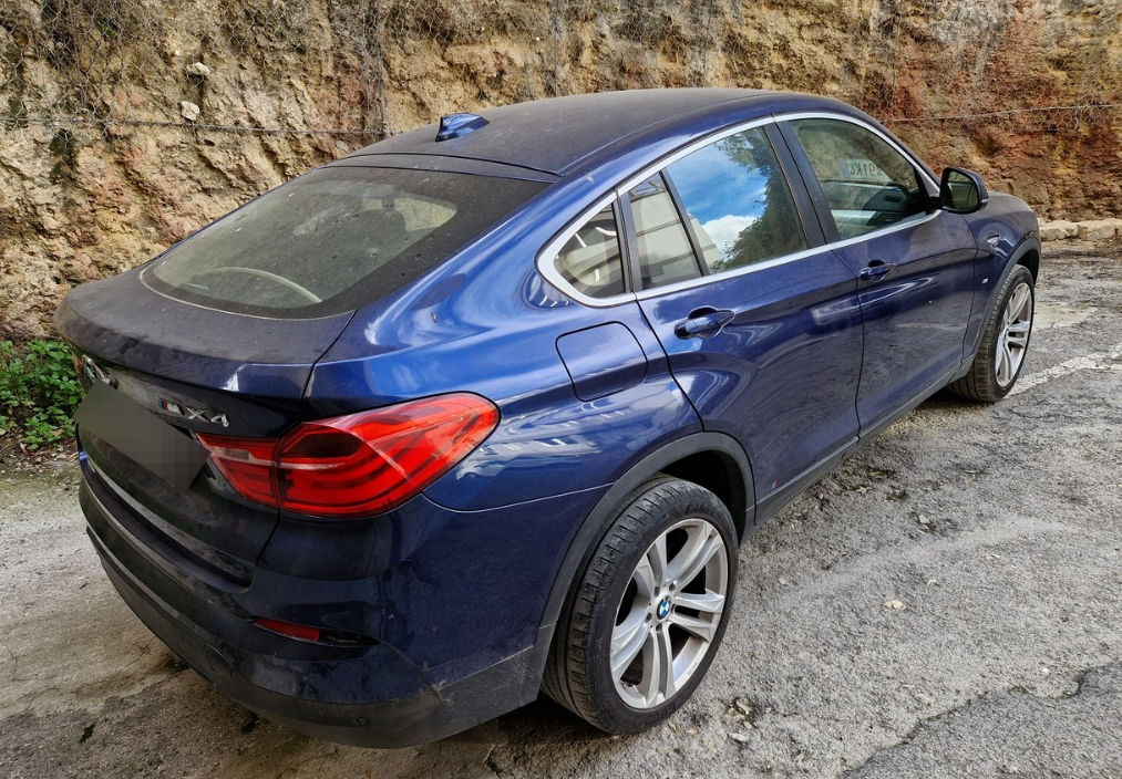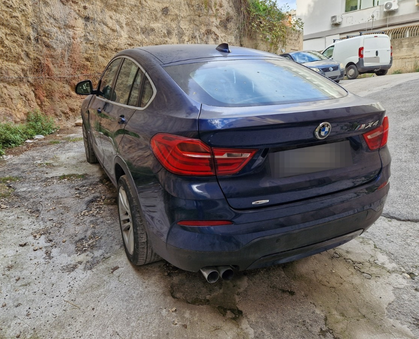 Autovettura Bmw X4, Xdrive 20D con allestimento M, anno 2014, cilindrata 1995 cc, kw 140, alimentazione a gasolio, Km rilevati 259.730, funzionante ed apparentemente con necessità di manutenzione ordinaria – Lautovettura oggetto di valutazione è di tipo SUV, a cinque porte, di colore blu metallizzato e cerchi in lega a cinque razze. Lallestimento caratterizzante lautovettura è la serie M, pacchetto sportivo che aggiungeva dettagli estetici e tecnici sportivi, rispetto ad altri modelli. Per lo più, paraurti sportivi, cerchi in lega, rifiniture, volante in pelle M. La carrozzeria si presenta integra e non si osservano danni rilevanti ad eccezione di striature sparse e nello specifico sul paraurti anteriore lato guidatore, unammaccatura interessante il parafango e parte dello sportello del guidatore e leggere striature superficiali lungo tutta la fiancata lato passeggero. Il motore è un 2.0 di cilindrata da 140 kw e 190 cv, alimentato a gasolio, dotato di cambio automatico. Il contachilometri riporta una percorrenza di 259.726 km e la necessità di provvedere al tagliando. Si mette in moto regolarmente senza dar sintomi di problemi meccanici, oltre ad essere funzionante nel suo complesso. I copertoni si presentono in scarse condizioni ed andrebbero sostituiti. Gli interni sono caratterizzati da sedili in tessuto di colore beige. Si presentano molto sporchi e con una leggera usura, considerati i chilometri percorsi e lanno di produzione. Si evidenziano danni nel sedile posteriore lato passeggero, causata da bruciatura oltre alla maniglia del passeggero anteriore, la quale si presenta con la plastica cotta dal calore del sole – – chiavi presenti – Per ulteriori informazioni consultare il libretto di circolazione in allegato