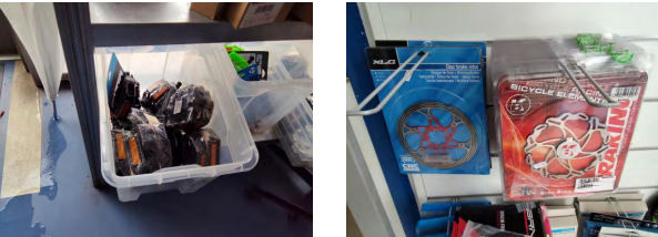 Lotto n.20 RIMANENZE DI MAGAZZINO ARTICOLI E RICAMBI BICI TRA CUI PEDALI, RUOTE, MANUBRI, ATTACCO MANUBRIO, REGGISELLA TELESCOPICI E NORMALI, DISCHI FRENO, PASTIGLIE FRENO, RAGGI, CATENE, CORONE, PORTA BORRACCE, BORRACCE, SELLE, BORSE E BORSELLI, MANOPOLE, POMPE, CESTINI, PORTA PACCHI, CAVI E GUAINE, COPERTONI, CAMERE D’ARIA, N. 4 RULLI PER ALLENAMENTO, N. 17 CAVALLETTI PORTA BICI, ECC…